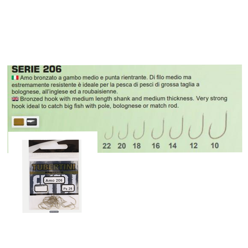 Amo bronzato a gambo medio e punta rientrante. Di filo medio ma estremamente resistente è ideale per la pesca di pesci di grossa taglia a bolognese, all’inglese ed a roubaisienne. Caratteristiche: - Bronzato - Paletta - Gambo medio - Filo medio - Con ardiglione .- Punta rientrante