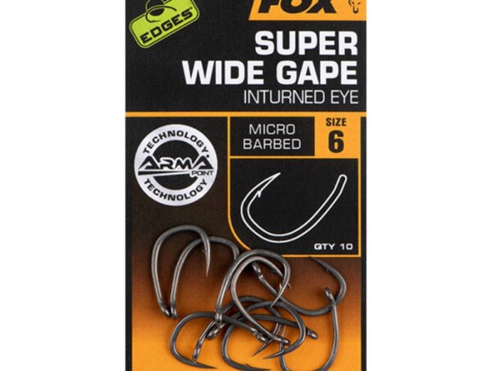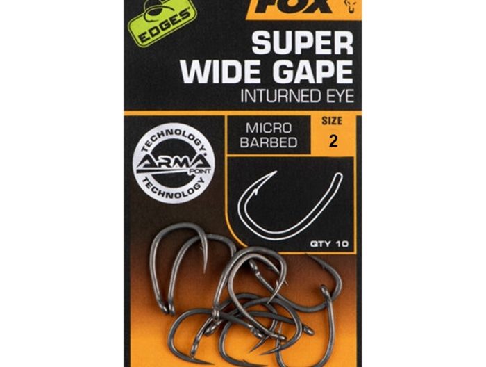 L'Amo Super Wide Gape prodotto da Fox è nato dopo lunghe discussioni e molteplici studi approfonditi. Si tratta di un Amo Fox innovativo. esso, infatti, si caratterizzata per la presenza di curvatura parecchio ampia e lunga e punta a becco affilatissima. Questo Amo Super Wide Gape Fox, impiegato anche nei terminali più semplici, riesce a garantire un'ottima presa, perfino in caso di prede molto grandi.