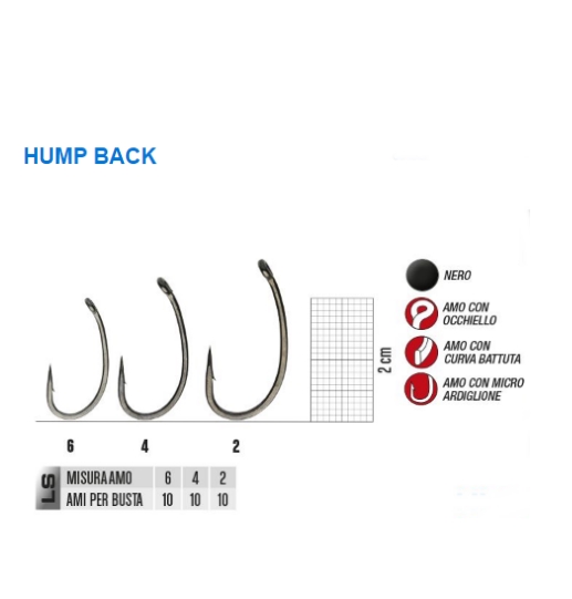 L’Hump Back è basato su un nuovo disegno in grado di favorire la rotazione dell’amo anche in caso di timide abboccate di carpe molto sospettose. Grazie a questo amo le vostre performance negli ambienti più difficili saranno ineguagliabili. Ardiglione Micro Barb per una migliore penetrazione e facile slamatura.