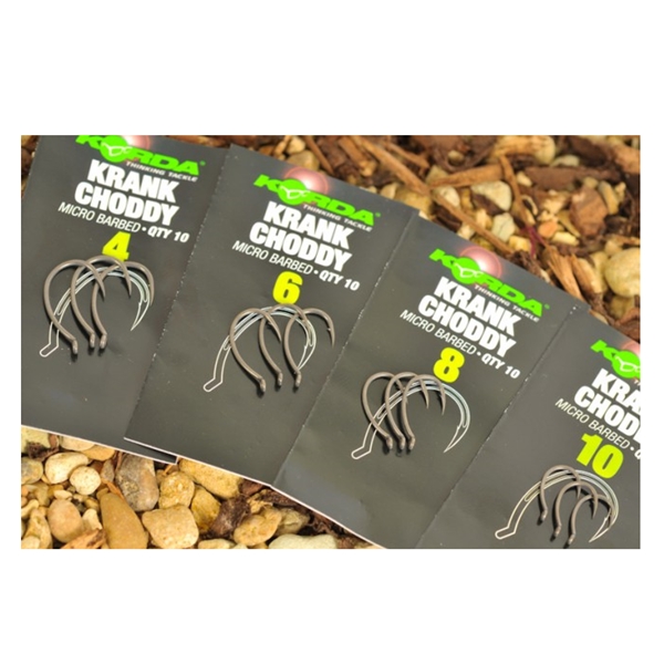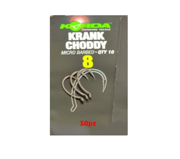 Non molto tempo dopo che l’amo Krank fosse ideato, Tom Dove ha ordito un piano di introdurre una versione Chod, con l’occhio girato verso l’esterno. La sua immaginazione è stata catturata dal modo in cui il gambo sempre curvo mantiene la curva della montatura Chod, creando quello che molti di noi considerano essere un eccezionale amo Chod.  Proprio come gli ami standard Krank, il Krank Choddy ha una punta a becco e una leggera curva che si combinano per offrire la sicurezza per la tenuta dell’amo senza pari.  Naturalmente possono essere utilizzati con i non denudati, rivestiti trecciati o con i collegamenti di mono ami per produrre delle efficaci montature con le esche per il fondo!   10pz per Busta.