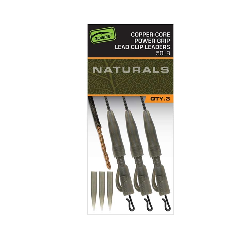 Realizzati utilizzando Edges Naturals 50lb Copper-Core Naturals Copper-Core è un leader in trecciato con un'anima in rame in stile maglie di catena Estremamente flessibili a differenza dei tradizionali leader Leadcore e più pesanti di altri leader senza piombo 3 pezzi di lunghezza 75 cm I componenti del rig Edges Naturals garantiscono la presentazione ideale con clip per il piombo Forniti con code in gomma Power Grip Tail Rubbers, clip per piombo della misura 7, manicotti anti-groviglio Micro e girella a cambio rapido della misura 7 Beneficiano della colorazione "Naturals", che è verde scuro e discreta Forniti in contenitore di cartone riciclabile