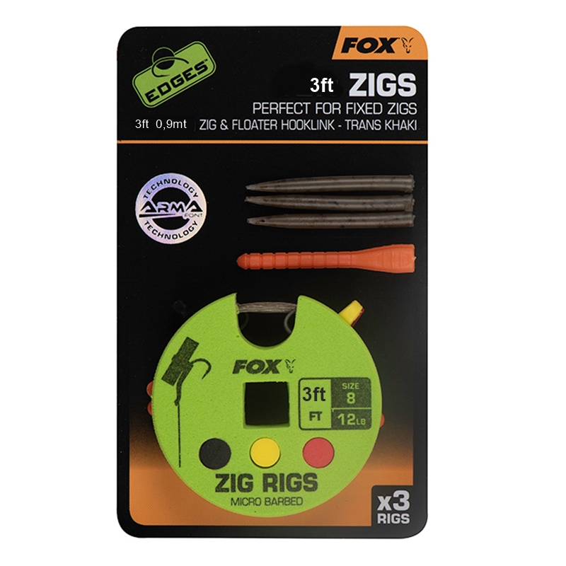 Zig Rig perfettamente creati , Ottimi per catturare pesce nella parte superiore della colonna dacqua ,Terminale 12lb (5.44kg) Zig e Floater , La lunghezza di 3ft (90cm) e 12ft (360 cm) può essere ridotta per adottare quella da voi desiderata , Manicotto Camo Anti Tangle Sleeve , Zig Aligna uno Rosso, uno Giallo e uno Nero , 14mm Zig Foam uno Rosso, uno Giallo e uno Nero , Attrezzo per caricamento Zig Aligna Loading tool gratuito , Utilizzare in congiunzione con una Zig Rig Lead Clip ,,Provate colorazioni e profondità differenti fino a quando non iniziate a catturare.