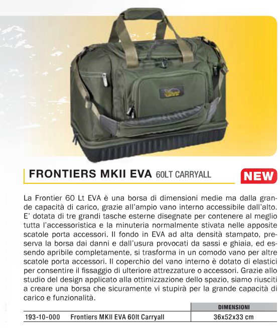 La frontiers 60 lt EVA è una borsa di dimensioni medie ma dalla grande capacita' di carico , grazie all'ampio vano accessibile dall'alto .