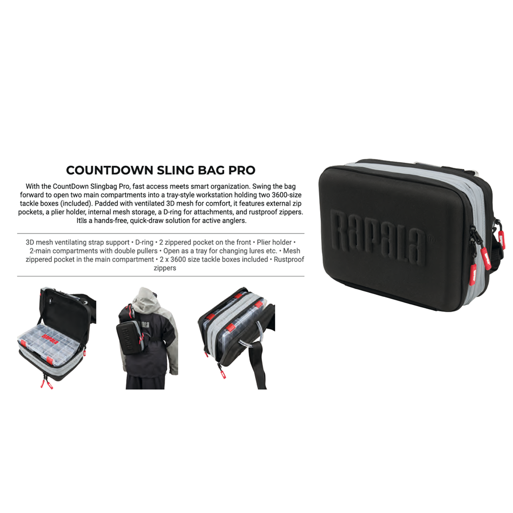 Rapala CountDown Sling Bag Pro è il compagno ideale per il pescatore dinamico, unendo accesso rapido e organizzazione intelligente in un unico design. La sua caratteristica distintiva è la possibilità di ruotare la borsa in avanti, trasformando uno dei due scomparti principali in una comoda postazione di lavoro a vassoio. Progettato per essere una soluzione a mani libere, questo sling bag può contenere due scatole porta-attrezzi formato 3600 (incluse), mantenendo l'attrezzatura essenziale sempre a portata di mano. Il comfort è garantito anche durante lunghe sessioni di pesca grazie all'imbottitura in rete 3D ventilata, che offre una traspirabilità superiore. L'organizzazione è un punto di forza: è dotato di tasche esterne con cerniera, un pratico portapinze, uno scomparto interno in rete, un anello a D per gli accessori e cerniere antiruggine per una durabilità eccezionale in ambiente salmastro. Se cerchi una soluzione rapida, comoda e versatile per la tua attrezzatura, il CountDown Sling Bag Pro è la risposta. MISURE 31X23X11cm Caratteristiche Principali: Sling bag con design ad accesso rapido. Trasformabile in una postazione di lavoro a vassoio. Contiene due scatole porta-attrezzi formato 3600 (incluse). Imbottitura in rete 3D ventilata per massimo comfort. Tasche esterne con cerniera, portapinze e anello a D. Cerniere antiruggine.