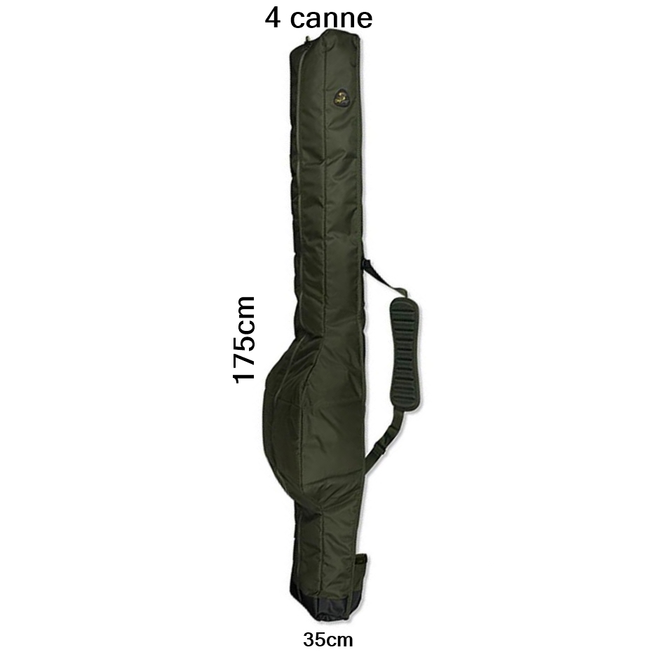 Massima protezione per canne e mulinelli grazie agli spessori interni imbottiti. Singola zip nel comparto principale per un rapido accesso. Tracolla in EVA antiscivolo completamente regolabile e imbottita. Base rinforzata. Consente stoccaggio di canne con anelli da 50 mm. Disponibile nella versione 3 o 5 canne da 12/13 piedi.