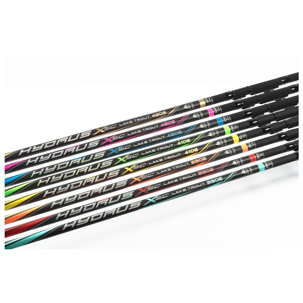 La nuova serie di canne per la pesca alla trota in lago Trabucco Hydrus XSC Lake Trout  ha azioni paraboliche e super-paraboliche, la struttura è a profilo Ultra Slim con diametri d'impugnatura veramente fini, vette sdoppiate con sensibile vettino in carbonio, innestato e legato. Anelli a gambo medio con passante in SiC, pacchetto anelli estremamente compatto e perfetto nei minimi dettagli. Bande colorate per l’immediata identificazione dell'azione, placca portamulinello in acciaio e gomma . Tappo inferiore ultraleggero a filettatura interna.