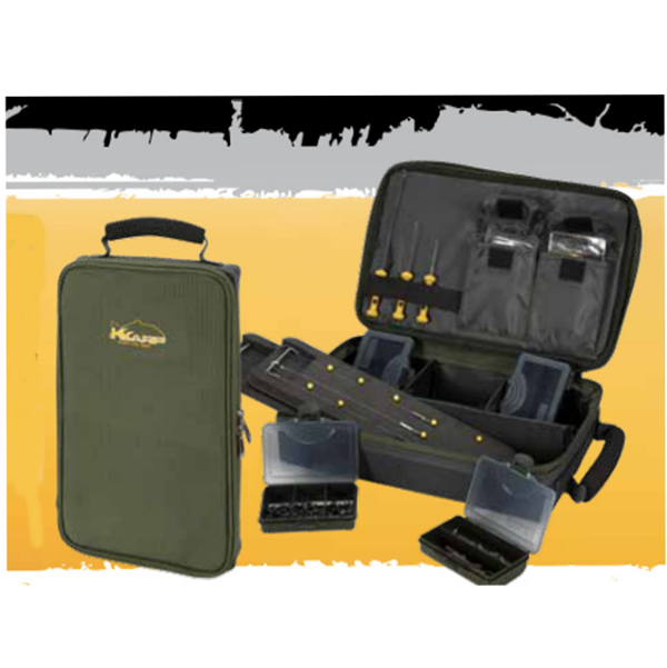 Borsina rigida dedicata ai finali e allattrezzatura necessaria per costruirli. Presenta in dotazione due tavole in EVA asportabili per i finali pronti, mentre lo spazio è modulato appositamente per contenere le k-karp Accessory Box da 2-3 e 4 comparti. Nel coperchio sono presenti due tasche e una banda elastica cucita per riporre forbici, knot puller,ecc