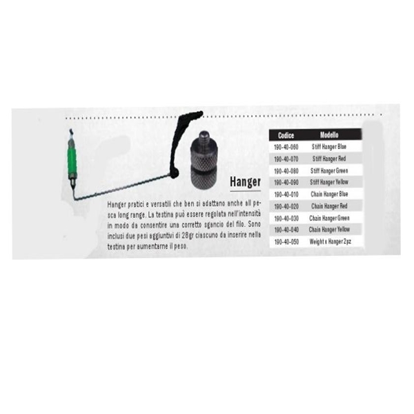 Drop indicator montato con una barra in acciaio, per la massima stabilità anche in presenza di forte vento. La testina può essere regolata nell?intensità in modo da consentire una corretto sgancio del fi lo. Sono inclusi due pesi aggiuntivi di 28gr ciascuno da inserire nella testina per aumentarne il peso. Sistema di sgancio fast release