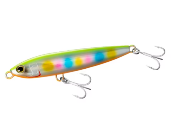 L'Exsence Galaslide 95F ha una lunghezza di 95 mm ed è ricco di attrattive visive e sensoriali. Questa esca galleggiante di superficie adotta una posizione leggermente "a testa in su" quando è ferma e crea un effetto schizzo quando viene recuperata con un'azione di "walk the dog" con partenza da fermo. Con la sua finitura olografica 3D Scale Boost per la massima attrazione visiva, l'Exsence Galaslide è dotato anche di un sistema di trasferimento del peso magnetico per aumentare la distanza di lancio e di una robusta struttura del corpo ad armatura passante per la massima resistenza. L'aggiunta di un rattle di vetro crea un rumore di carico quando viene utilizzato con un'azione di recupero aggressiva.