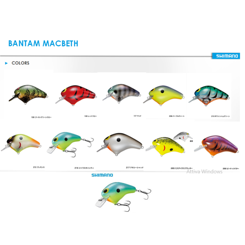 Il Bantam Macbeth è un'ottima ESCA per la ricerca veloce . A causa dell'esclusivo peso del baricentro basso, l'esca non viene quasi più catturata (vedi film). L'ampia azione è dovuta allo "Slash Edge lip", che ha un design più sottile su entrambi i lati, che offre meno resistenza all'acqua e, di conseguenza, un'azione di oscillamento e calcio migliore e più ampia.
