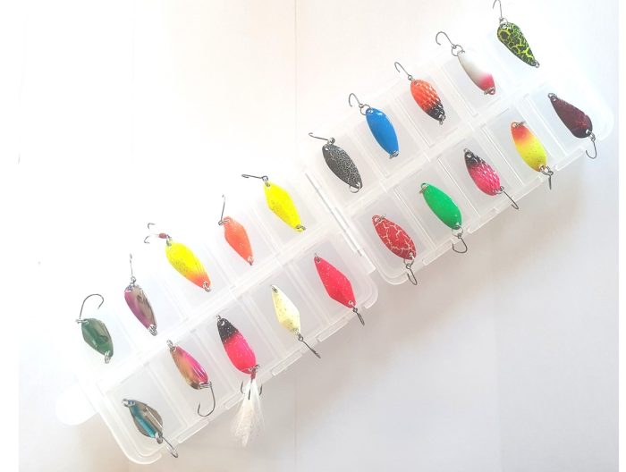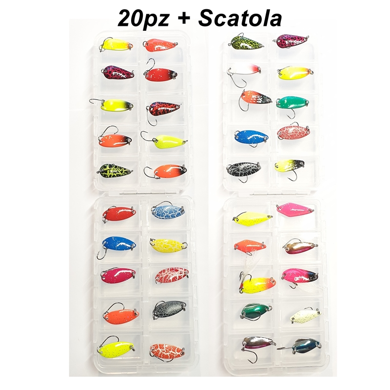 Kit di ondulanti ad amo singolo specifici per la pesca alla trota in lago . ATTENZIONE LE COLORAZIONI ALL'INTERNO DEL KIT POTREBBERO DIFFERIRE DALLA FOTO A SECONDA DI COME CI VENGONO FORNITI , IL NUMERO DI PEZZI E LA SCATOLA NON CAMBIA!!