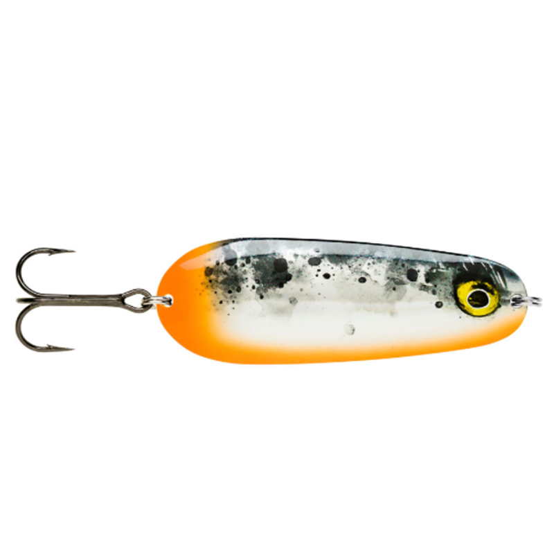 Il Rapala® Nauvo porta un aggiornamento moderno ad un tradizionale e collaudato ondulante in metallo. Il Nauvo nuota con un'azione scodinzolante ampia e realistica su un recupero costante, mentre un recupero più veloce aggiunge guizzi irregolari all'azione, rompendo il ritmo e aggiungendo flash. L'azione sfarfallante in caduta aggiunge ulteriore attrazione. Le finiture moderne combinano, i colori dei cucchiai tradizionali con i modelli realistici e moderni in HD.