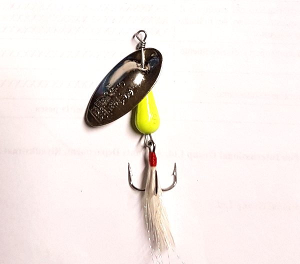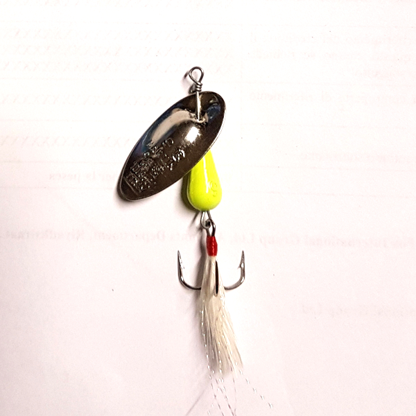 Artificiale che grazie al colore brillante e alla mosca con glitter  nell'ancoretta si presta molto bene nelle misure piccole per pescare in a trote o al persico....