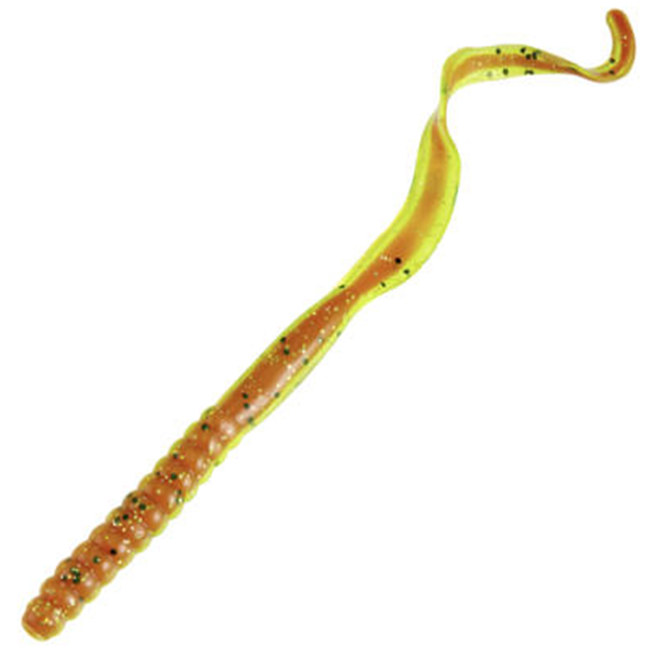 In U.S.A. il soft worm con coda ribbon indiscutibilmente piu' apprezzato. 30 anni di storia , ed ancora ai vertici delle vendite.Sono stati perfezionati i colori, e' stato aggiunto lo SCENT BLAST, ed ammorbidita la consistenza della gomma.Il nuovo ORIGINAL WORM CULPRIT mantiene il profilo celebre che lo ha reso una delle esche morbide piu' copiate di sempre ma acquista importanti features.L'assetto ventrale piatto,il dorso smussato e la coda filiforme molto lunga lo rendono adatto a recuperi veloci ,usandolo come una vera e propria reaction bait,sia a recuperi lentissimi e presentazioni naturali su bass indolenti.Lunghezze 6'' 7'' .