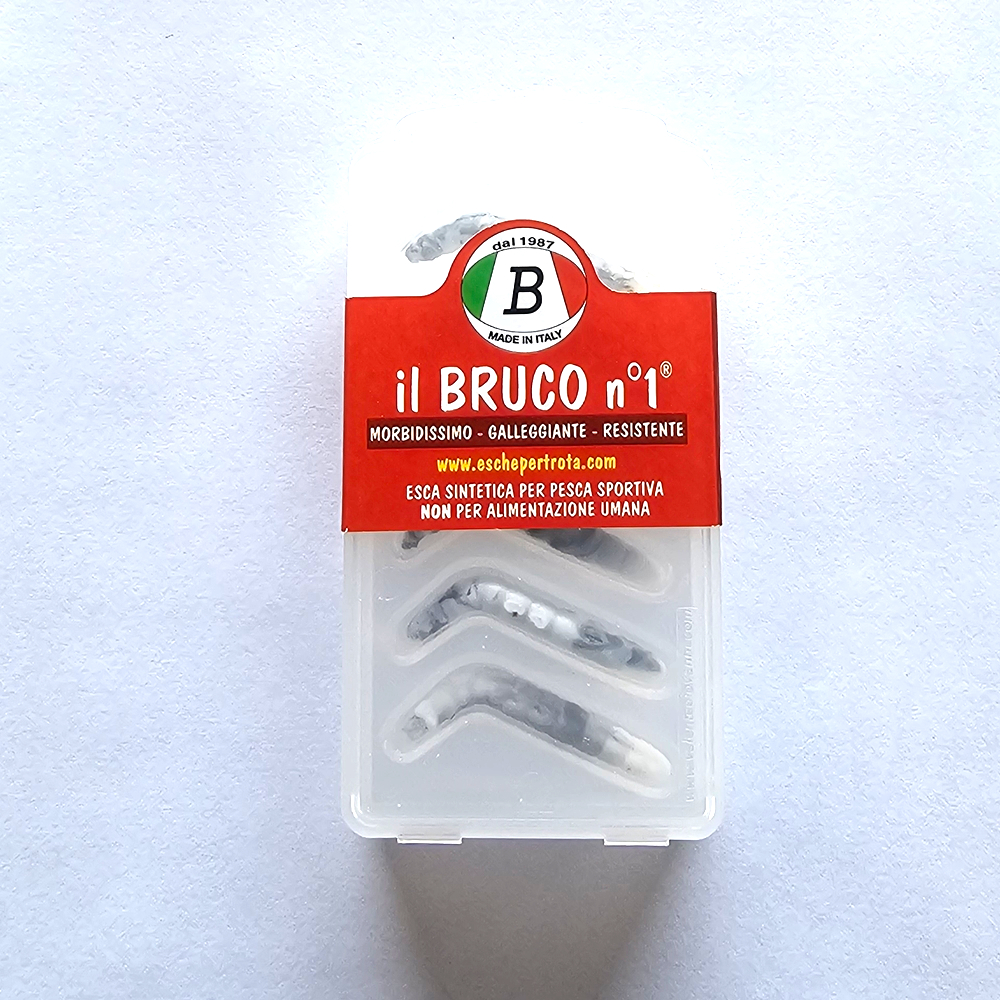 Esca in morbidissima gomma siliconica di vari colori. Realisticamente simile al caimano e già deformato ad "L" per avere l'effetto ad elica durante il recupero in trota lago. Speciale Novità per la pesca alla trota