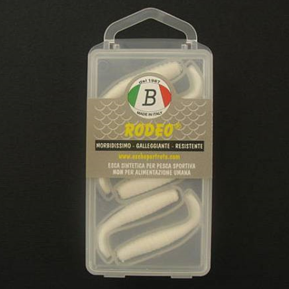 Si tratta dell'ultima novità nel campo delle nostre esche sintetiche. Valgono tutte le tecniche di utilizzo descritte per "il Bruco n°1". Rodeo ha le sembianze di un piccolo pesce preda e il suo aspetto e movimento si dimostrano ancora più adescanti. E' veramente valido nella pesca con la bombarda e per coloro che nella stagione estiva frequentano abitualmente il laghi da trota  si è dimostrato insuperabile nella pesca da fermo o in lento recupero con il Pipot, da solo o in combinazione con una camola. confezioni da 6 pezzi.