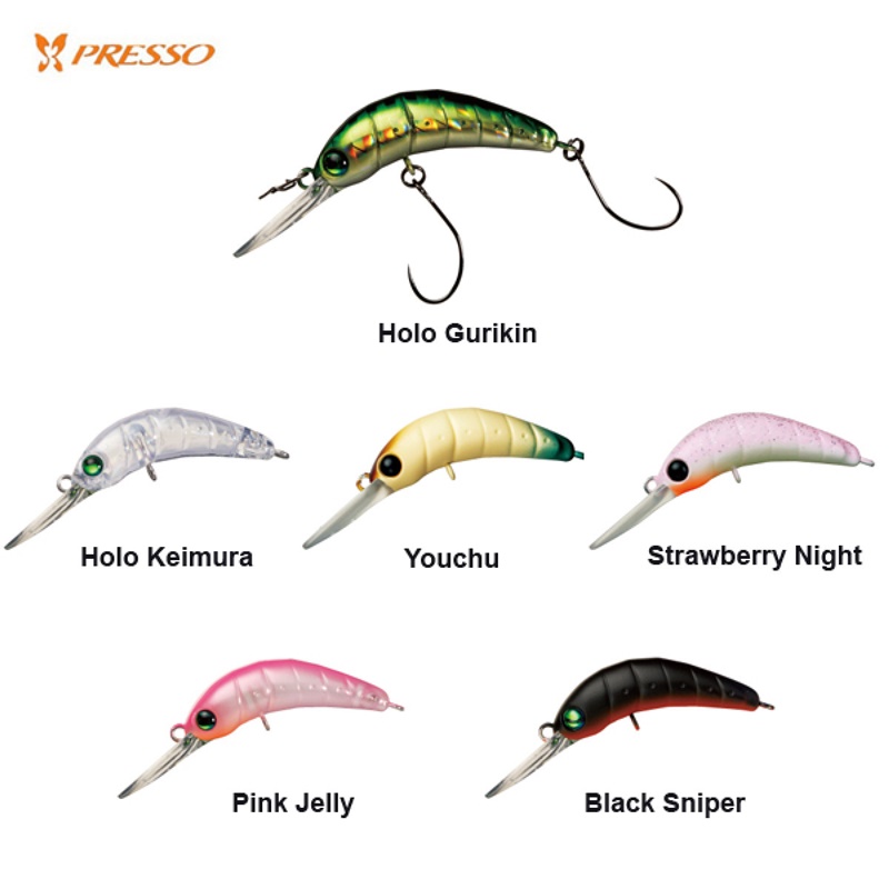 Il Daiwa Presso Imola è un minnow di piccole dimensioni specifico per trout area e trout game in genere. Dotato di doppio amo senza ardiglione. Può essere utilizzato sia nella pesca a spinning in laghetto sia in torrente. Anche se è specifico per trota viene apprezzato anche da cavedani e persici reali, per il suo nuoto estremamente dinamico. lunghezza 3,5 cm peso 2,1 gr. Floating.