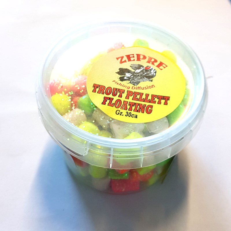 Pellet morbido galleggiante per la pesca della trota in laghetto, grazie all'aggiunta dei brillantini ,produce dei flash che lo fa diventare irresistibile . La consistenza del pellet è soffice cosi' da essere facile l'innesco sull'amo. 30 gr di prodotto netto: TRE COLORI DISPONIBILI: