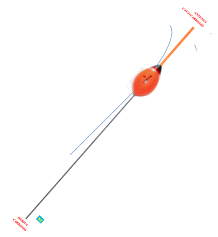 Galleggiante in carbonio passante, antenna cava infilata (cm. 2 vuoti), filo interno con occhiello che lo rendono il galleggiante più resistente. Perfetto per l'Arno pisano ma in genere per la pesca a bolognese o a roubasienne .