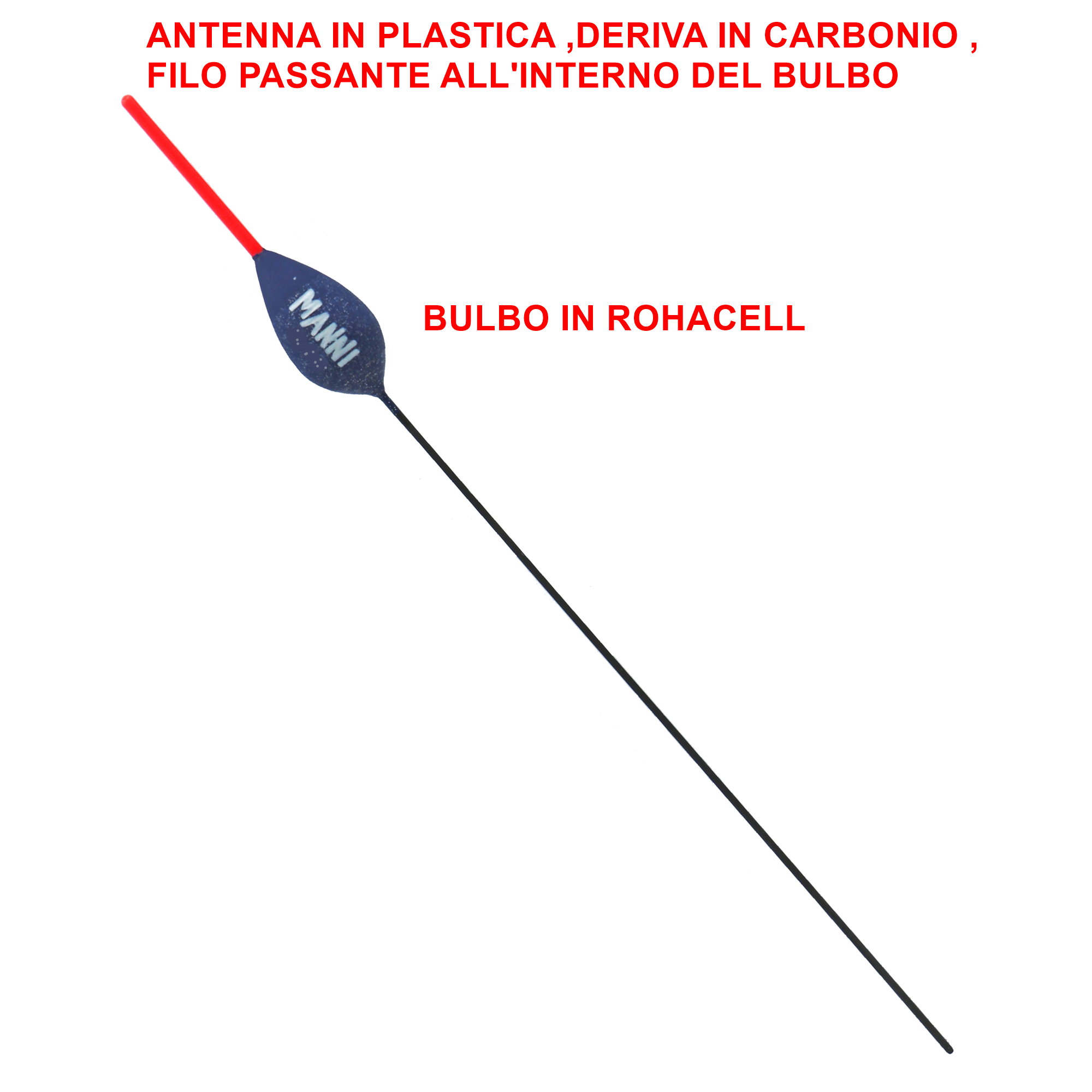 Questo nuovo galleggiante  è l'ultimo arrivato in casa MANNI . Assolutamente molto tecnico , Bulbo costruito in ROHACELL , materiale a celle chiuse quindi idrorepellente , materiale di altissima qualita' di uso areonautico.