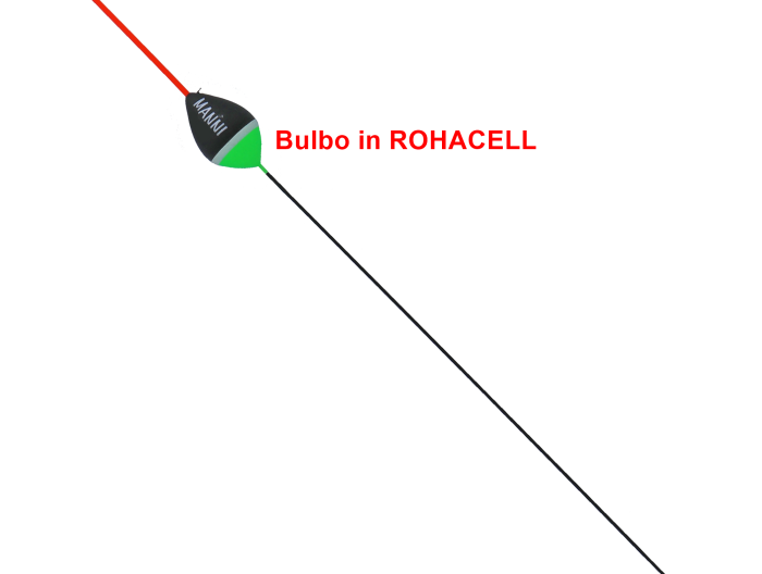 Questo nuovo galleggiante  è l'ultimo arrivato in casa MANNI . Assolutamente molto tecnico , Bulbo costruito in ROHACELL , materiale a celle chiuse quindi idrorepellente , materiale di altissima qualita' di uso areonautico.