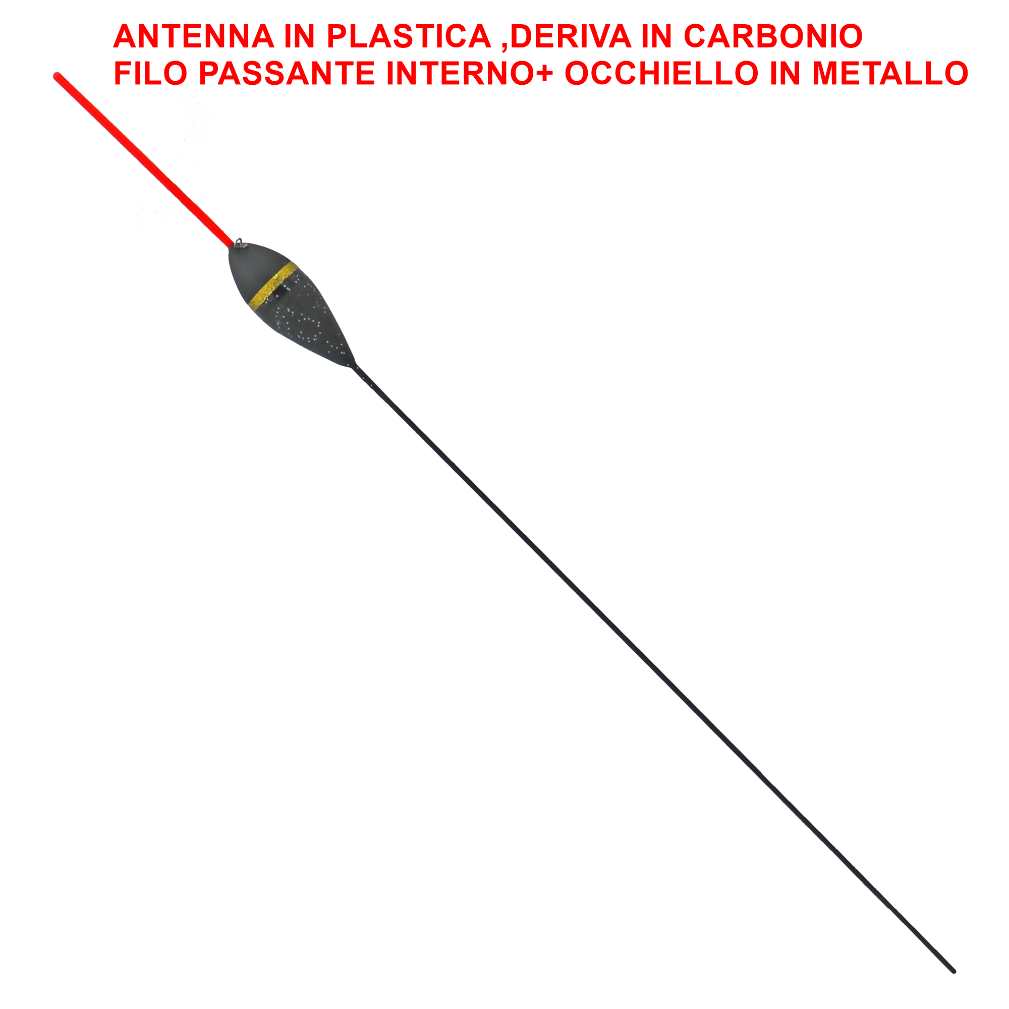 Galleggiante ROUEN  Manni, deriva in carbonio e antenna in plastica, filo passante interno . Un galleggiante di media lunghezza allround.