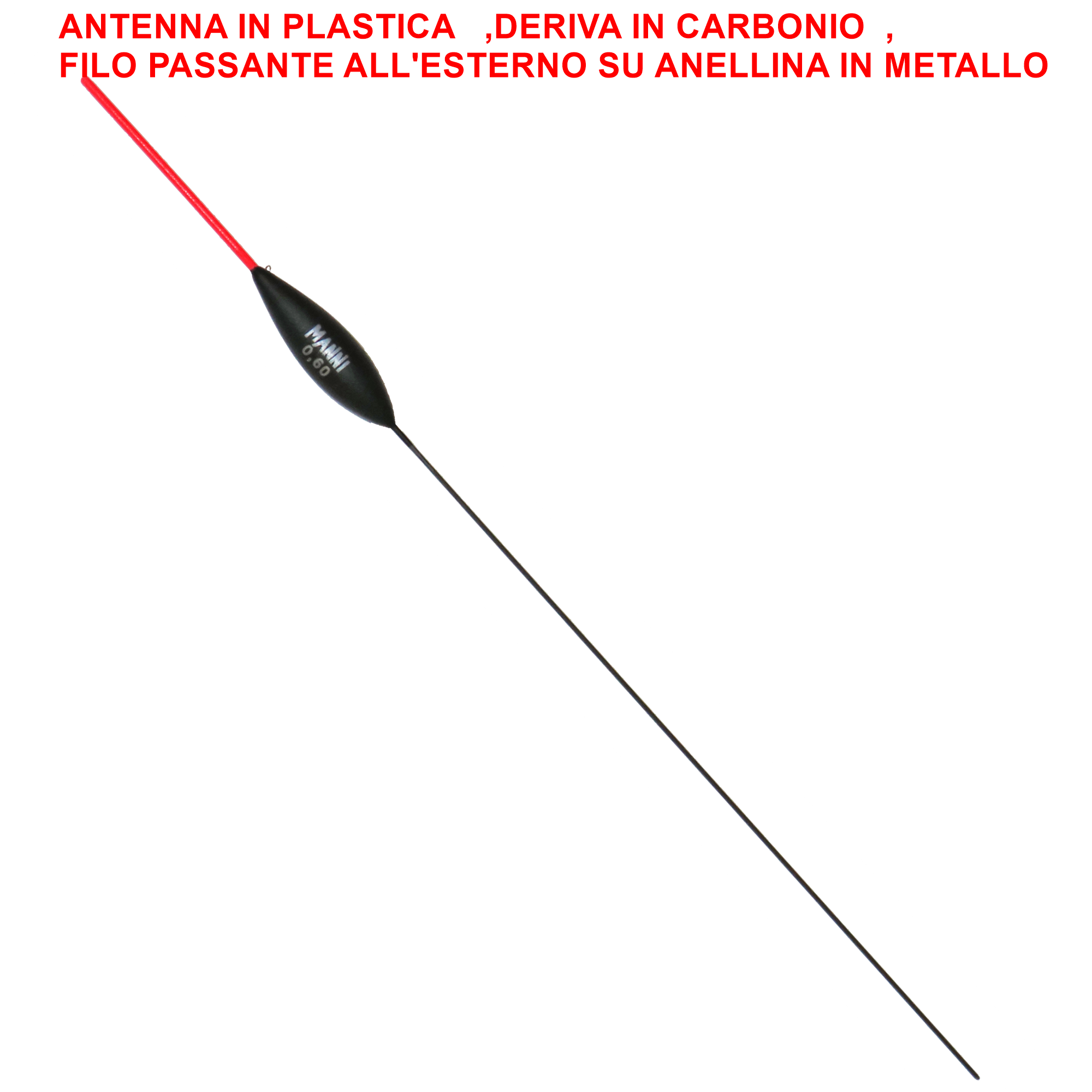 Galleggiante a filo passante esternamente su occhiello in metallo , Antenna in plastica e deriva in carbonio perfetto per la pesca in acque Lente.