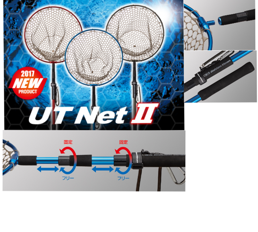Golden Mean UT NET è il nuovo guadino per chi fa spinning da barca o da riva in torrente ad esempio , grazie alla rete in gomma il pesce non soffre lo struscio della rete . Ideato con materiali supe leggeri è un articolo di altissima qualita' .