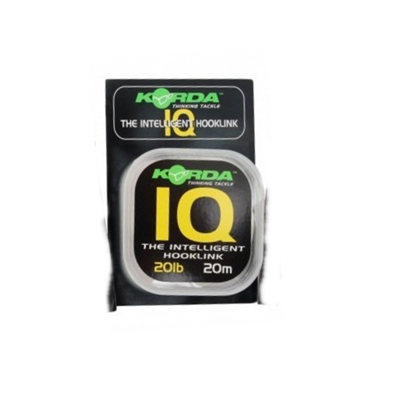 Il korda IQ è un fluorocarbon che rifrange luce quasi nello stesso modo che lo fa l'acqua, rendendo quasi invisibile quando immerso in acqua. E 'più rigido del nylon normale così da impedire il groviglio durante il lancio e da migliorare le caratteristiche di allamata.
