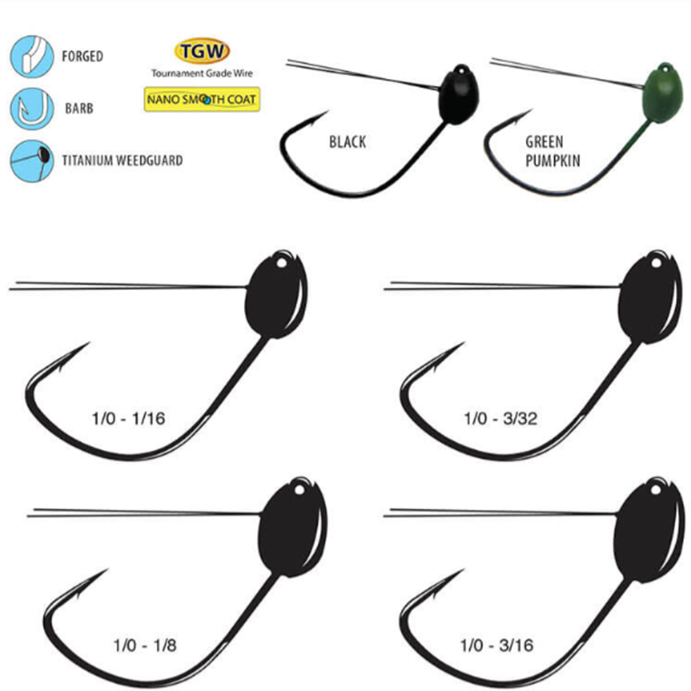 La Jig Head Wacky di Gamakatsu rappresenta un netto miglioramento rispetto ad altri jig wacky. Il para-alghe in nichel/titanio è il primo segnale che Gamakatsu ha alzato l'asticella della pesca al black bass. Questo para-alghe è piccolo ma potente, in quanto elimina efficacemente i pericoli mantenendo la sua forma e rigidità anche nelle situazioni più impegnative. Anche la jig head rappresenta un miglioramento. Progettata per resistere meglio agli incagli, l'occhiello dell'amo è incassato per evitare che si impigli nella struttura. Anche l'amo è diverso, un'aggiunta personalizzata basata su un amo shiner ma modificato per la Jig Head Wacky. Il risultato è un rapporto molto più elevato tra allamate e pesci catturati rispetto a qualsiasi altro marchio comparabile. COLORE BLACK 3PZ PER BUSTA